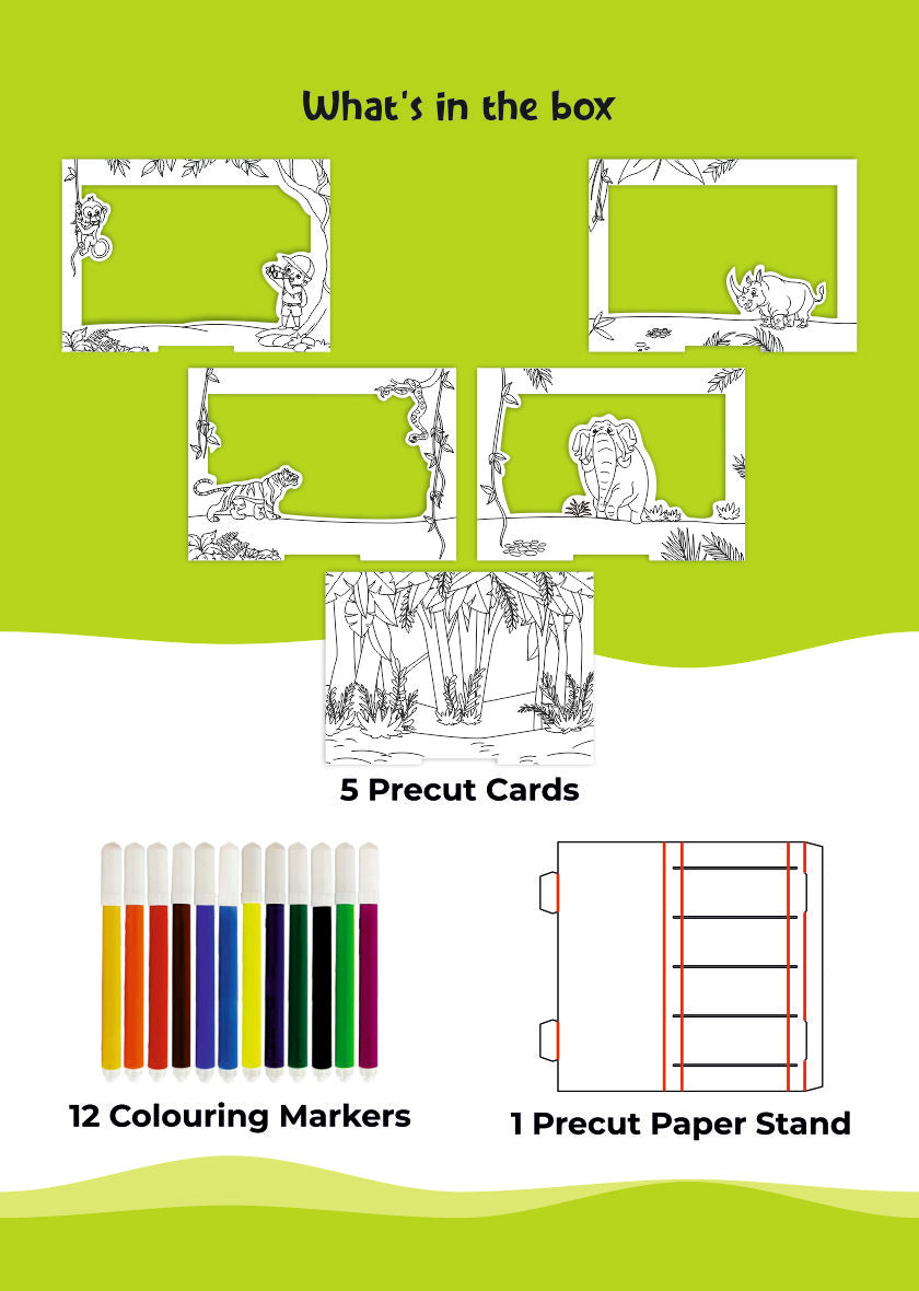 Perfect for kids who love animals, adventures, and hands-on fun, this kit transforms flat coloring into a 3D jungle escape!